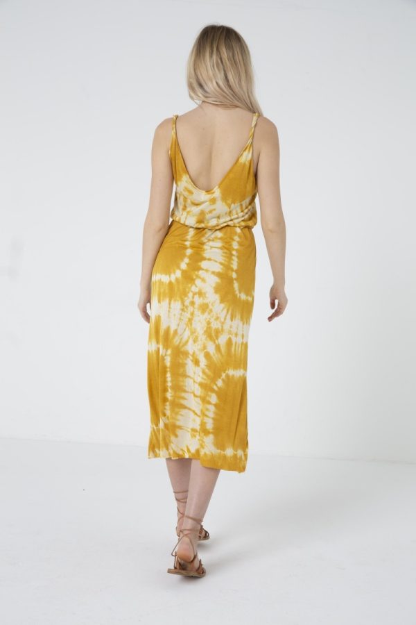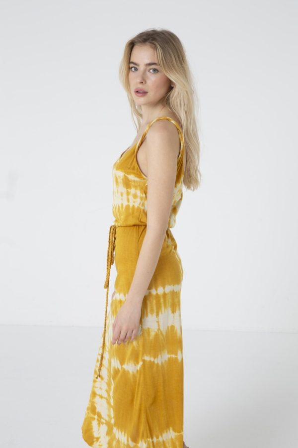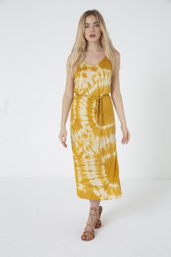 Robe à ceinture tressée aux bretelles légèrement ourlées et imprimé tie and dye.