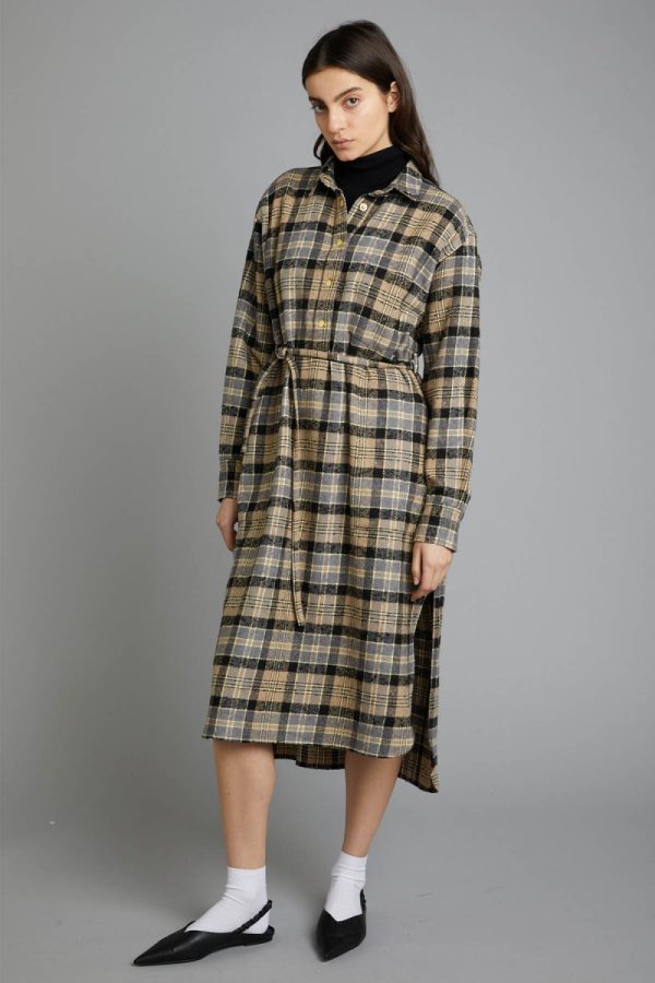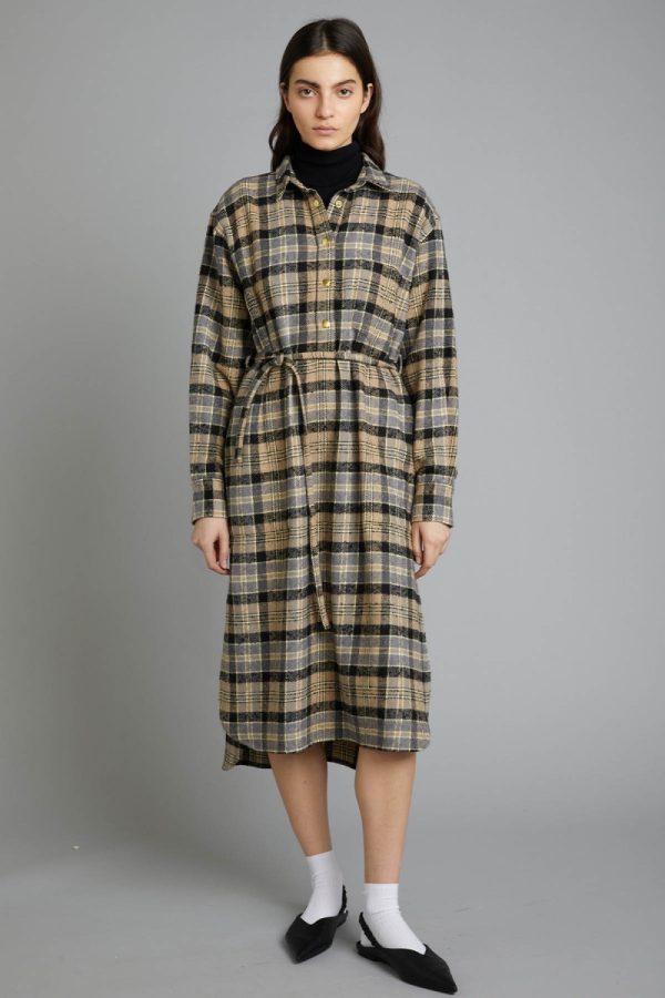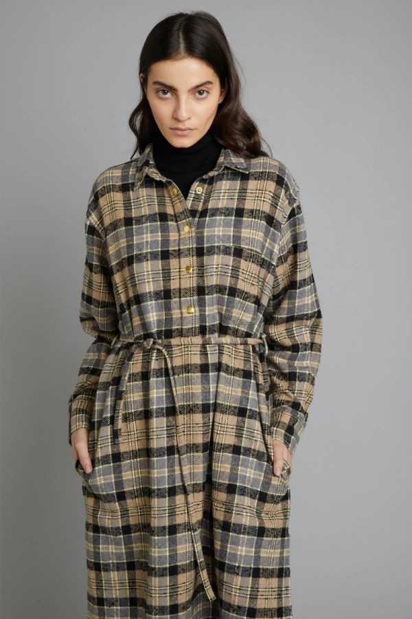 Laissez-vous séduire par la robe Isota : une robe chemise longue en coton gratté qui allie douceur, confort et élégance.